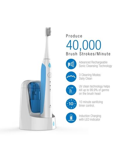 Rechargeable Sonic Toothbrush With Built-in UV Sanitizer - (White)