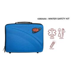 1 AAA Hard-Shell Foam Bag 1 Folding Shovel W/Sheath 1 9 LED Aluminum Flashlight 3 AAA Batteries 1 Warm Fleece Set W/Cap, Gloves, & Scarf 1 LED Safety Strobe W/Clip & Magnet On Back 3 Up-To-6 Hour Emergency Candles 1 Emergency Survival Blanket 1 Quick-Spark Fire Starter 1 Emergency Whistle W/Lanyard 2 Hand Warmer Packets 1 Ice Scraper 20 Bandages, 3/4 in X 3 in 15 Bandages, 3/8 in X 1 1/2 in 1 Adhesive Tape Roll, 1/2 in X 90 in (2 1/2 yd) 1 Sterile Gauze Pad, 2 in X 2 in 6 Antiseptic Towelettes, 5 in X 6 3/4 in 1 Sting Relief Pad, 2 1/4 in X 1 1/4 in 1 First Aid Guide 1 AAA Membership Brochure 1 Accident Forms & Guidelines