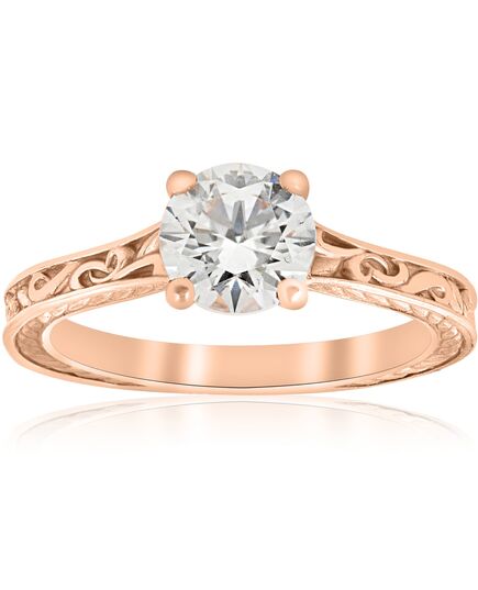1ct Diamond Solitaire 14k Rose Gold Vintage Engagement Ring Art Deco Filigree